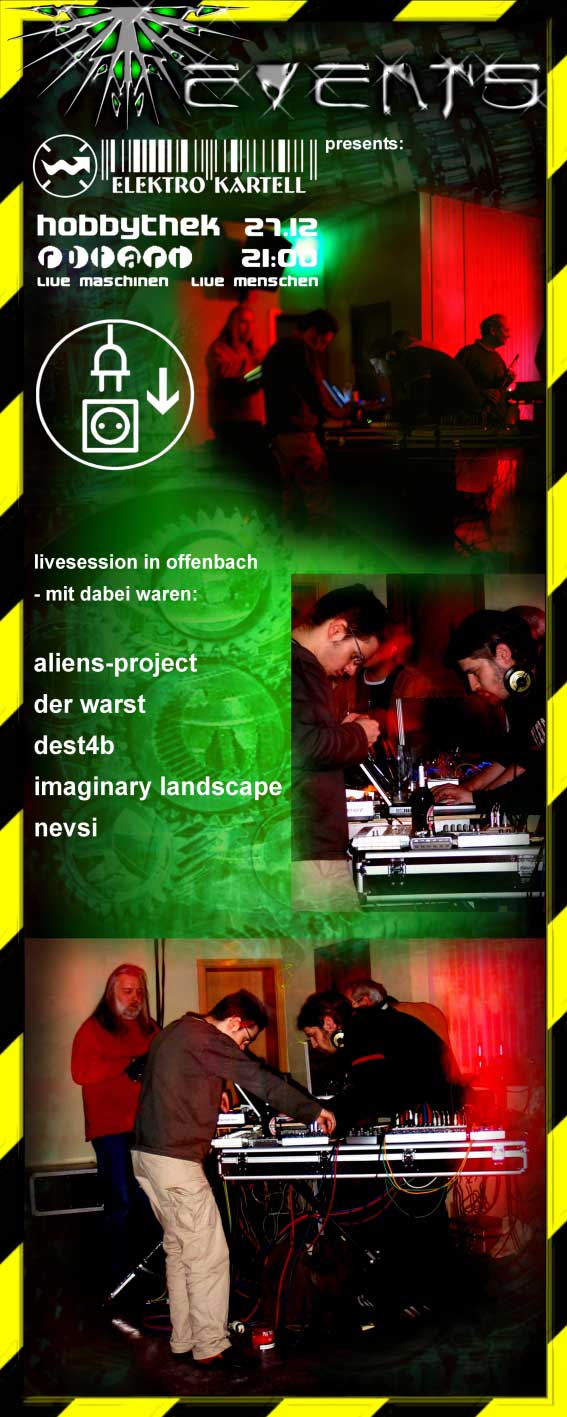 Vergangene Events 2006: Happy Knobbing Modular Synthesizer Meeting EK-Lounge Live-Jam 1 bis 7 Info + Bilder ![]() EK Lounge 7